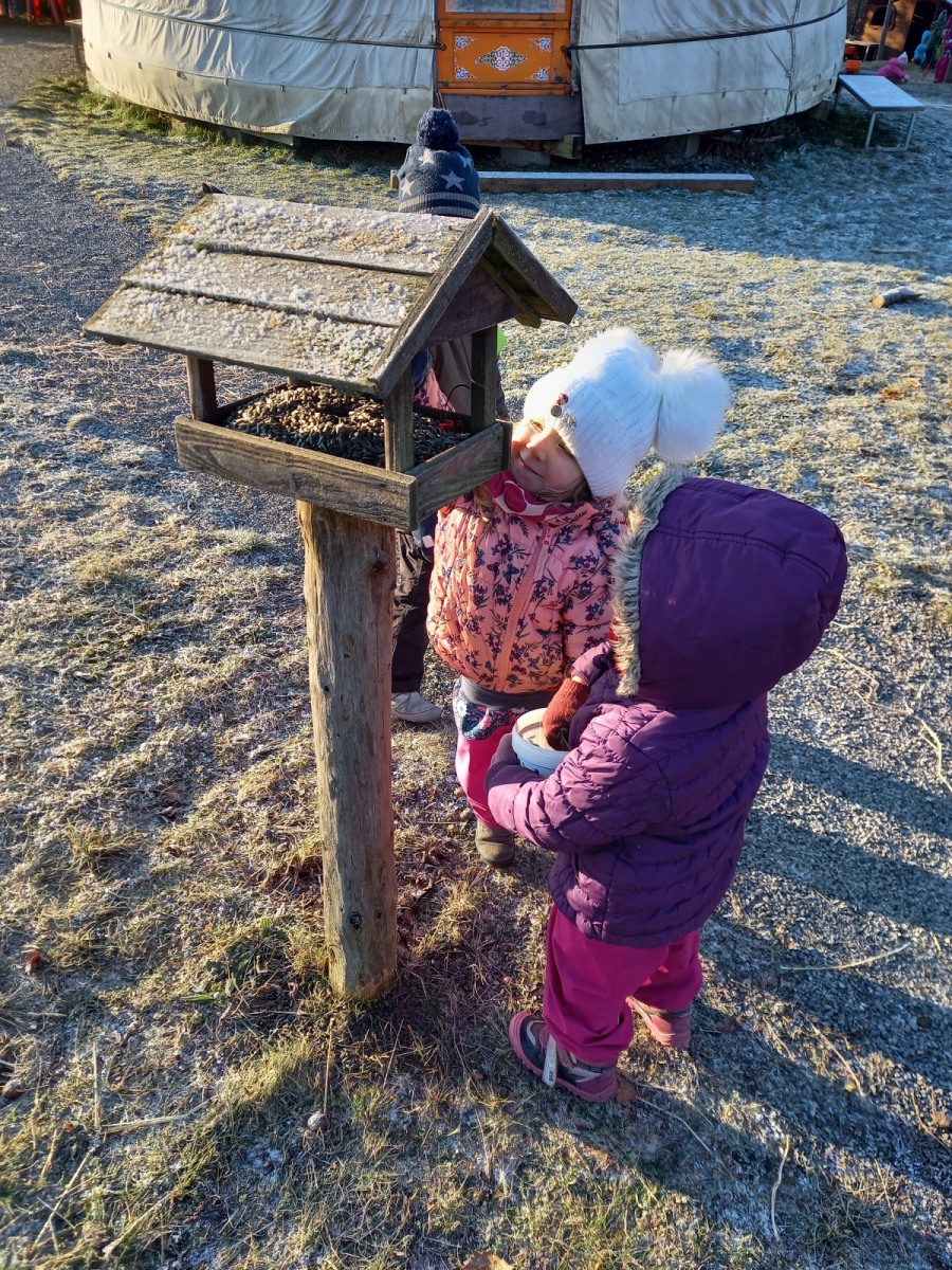 Kryté a v chladném období vytápěné zázemí tvoří pravá mongolská jurta, která slouží pro pobyt při nepříznivém počasí a k odpolednímu odpočinku dětí. Další zázemí tvoří vytápěná dřevěná chata, kde se za nepříznivého počasí stravujeme, tvoříme, ohříváme.